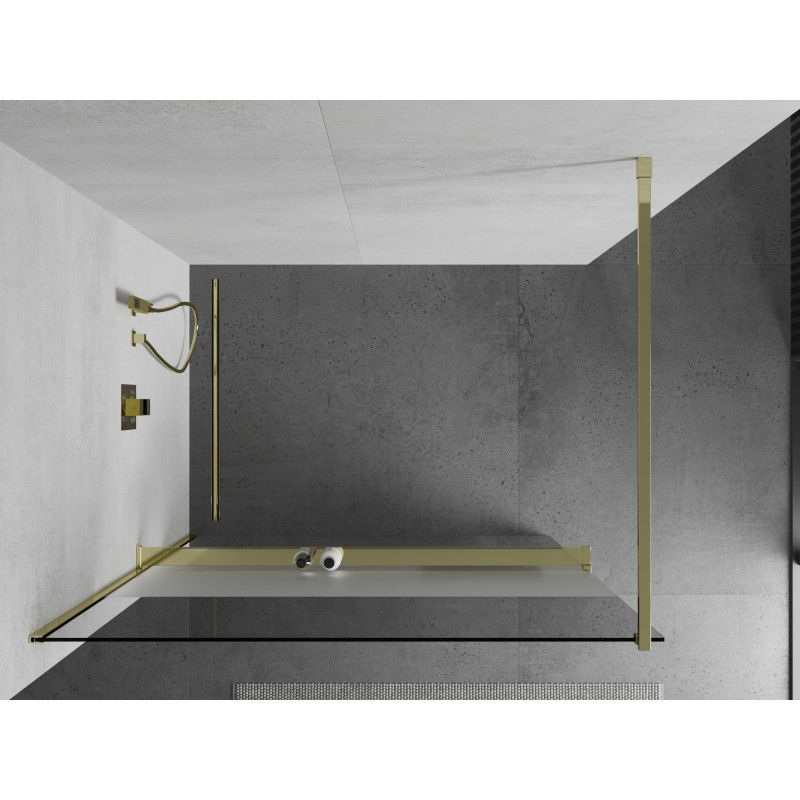 Mexen Kioto+ Sprchová zástěna s poličkou 70 x 200 cm, průhledná/mrazivá, zlatá - 800-070-121-50-35