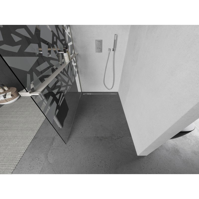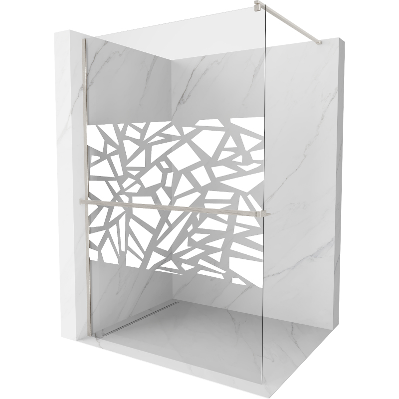 Specifikace produktu: Šířka: 80 cm Výška: 200 cm Montáž: Univerzální, pravá nebo levá Barva skla: Bílý vzor Povrchová úprava: Kartáčovaný nikl Typ skla: Tvrzené Tloušťka skla: 8 mm Profil: Hliník Konzola: Nerezová ocel Max. délka konzoly: 150 cm Materiál police: Hliník Šířka: 12,9 cm Výška: 3,2 cm Max. délka police: 140 cm Možnost zkrácení konzoly a police Povlak pro snadné čištění Vyrovnání nerovností stěn Možnost montáže na sprchovou vaničku nebo obklady