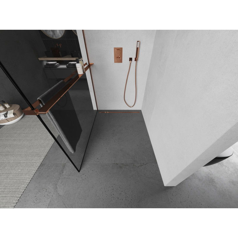 Mexen Kioto+ Sprchová zástěna s poličkou 80 x 200 cm, černý rám, růžové zlato - 800-080-121-60-70