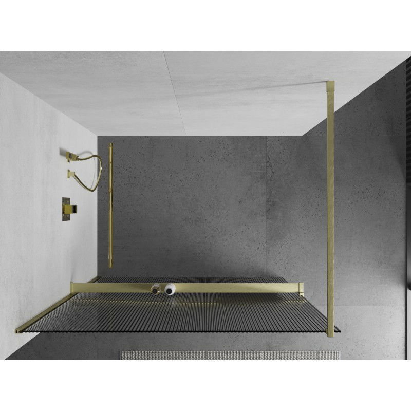 Mexen Kioto+ Sprchová zástěna s poličkou 80 x 200 cm, pruhy, kartáčované zlato - 800-080-121-55-09