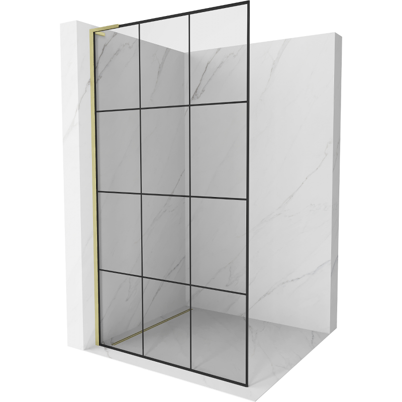 Mexen Kioto L Walk-in sprchová stěna 100x200, černý vzor, broušené zlato 800-100-103-55-77