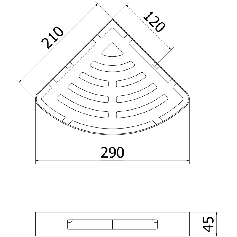 Specyfikacja produktu: Materiał: Stal nierdzewna AISI 304 Wykończenie: Czarny Szerokość: 21 x 21 cm Wysokość: 4,5 cm Półka posiada otwory, które zapewniają szybkie odprowadzanie wody Odporność na matowienie i korozję