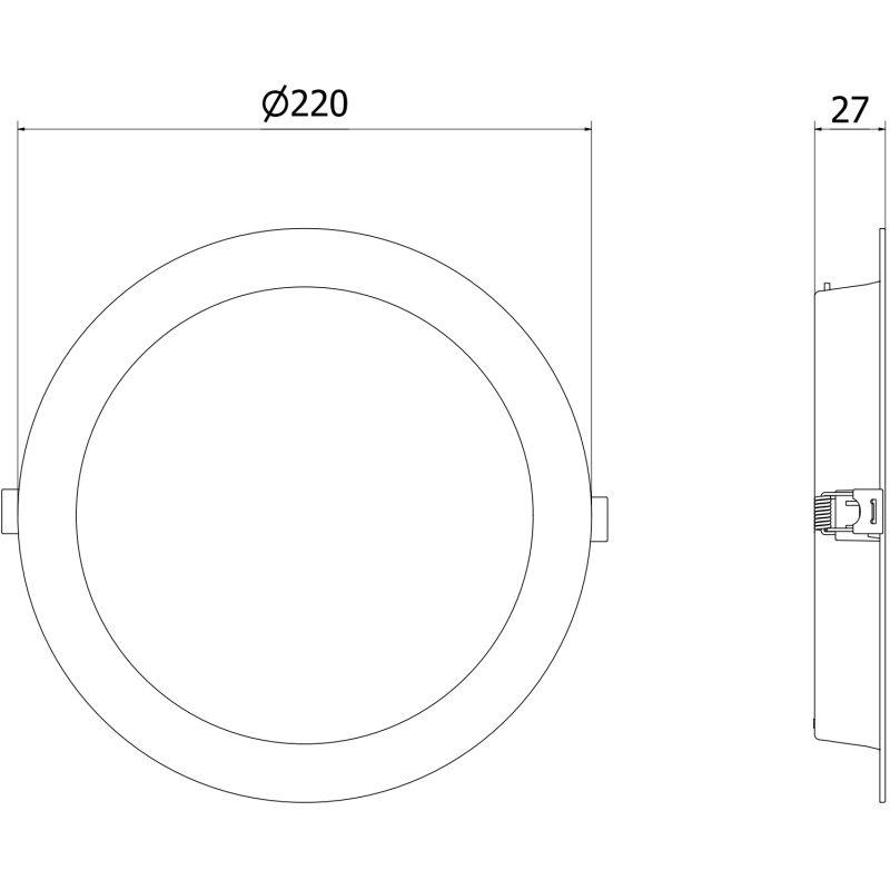 Dane techniczne: Średnica: 220 mm Wysokość: 27 mm Rodzaj diody: LED SMD Zintegrowane źródło światła LED: Tak Moc: 18 W Równoważna moc: 75 W Całkowity strumień świetlny: 1440 lm Skuteczność świetlna: 80 lm/W Barwa światła: Zimna Temperatura barwowa: 6500K Wskaźnik oddawania barw CRI: Ra ≥ 80 Możliwość ściemniania: Nie Kolor: Czarny Materiał obudowy: Polipropylen Materiał klosza: Poliwęglan Długość przewodu: 12 cm Przekrój przewodu: 2x0,75 mm Montaż: Wpuszczany w sufit Zastosowanie: Wewnętrzne Kąt świecenia: 110º Napięcie: 220-240V Zawiera osprzęt sterujący: Transformator elektroniczny Klasa energetyczna: G Zużycie energii: 18 kWh/1000 h Żywotność: 20000 h Temperatura pracy: -20°C do +40°C Klasa ochronności przed porażeniem elektrycznym: II Stopień ochrony: IP20 Certyfikaty: CE, RoHS