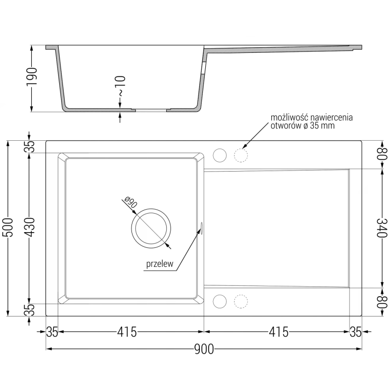 Dva dodatečné vyfrézované otvory pro samoděrování ø35