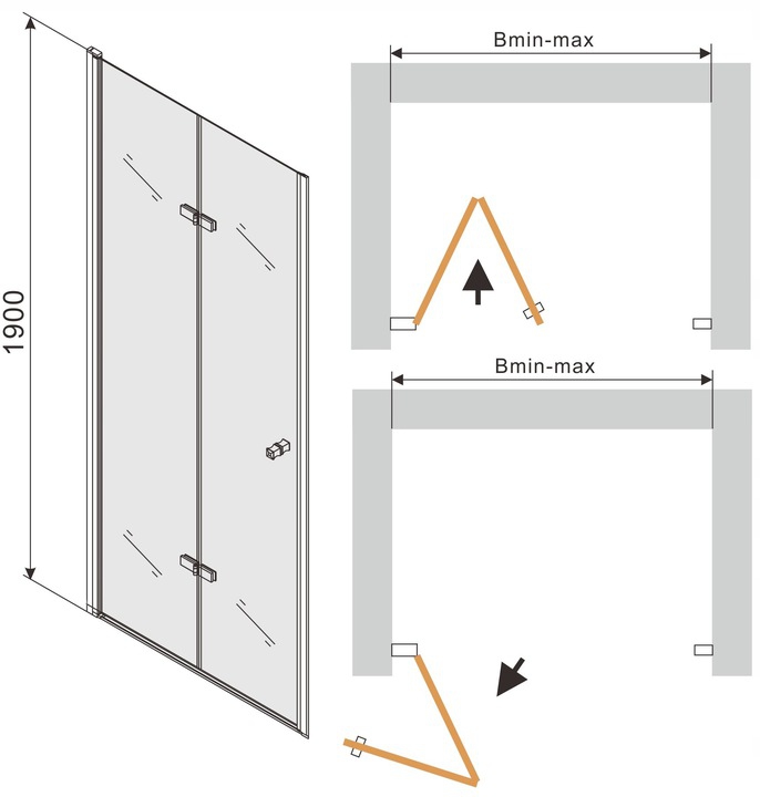 MEXEN LIMA sprchové dveře zalamovací 80x190 cm 6mm, zlatá-čiré 856-080-000-50-00