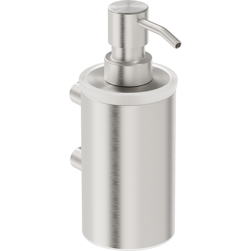 Specyfikacja produktu: Materiał: Stal nierdzewna + Szkło Wykończenie: Nikiel szczotkowany Szerokość: 7 cm Wysokość: 16,5 cm Odległość od ściany: 9 cm Pojemność: 160 ml