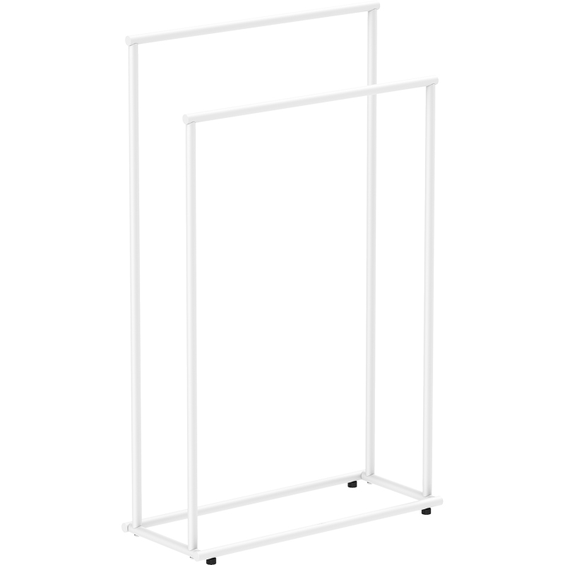 Specyfikacja produktu: Materiał: Stal nierdzewna Kolor: Biały Szerokość: 50 x 21 cm Wysokość: 82,5 cm 2 drążki na ręczniki o różnej wysokości