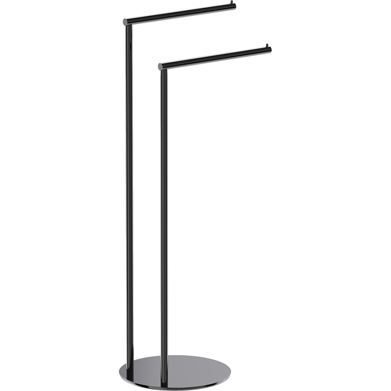 Specyfikacja produktu: Materiał: Stal nierdzewna Kolor: Black chrome Szerokość: 29 x 24 cm Wysokość: 78,5 cm 2 drążki na ręczniki o różnej wysokości