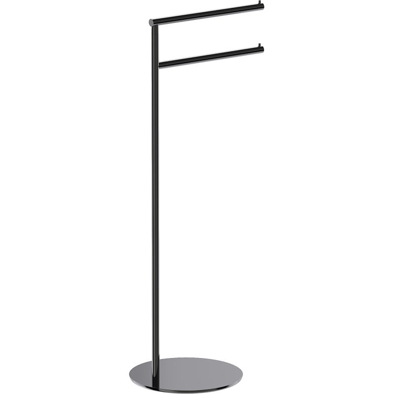 Specyfikacja produktu: Materiał: Stal nierdzewna Kolor: Black chrome Szerokość: 29 x 24 cm Wysokość: 79 cm 2 drążki na ręczniki o różnej wysokości