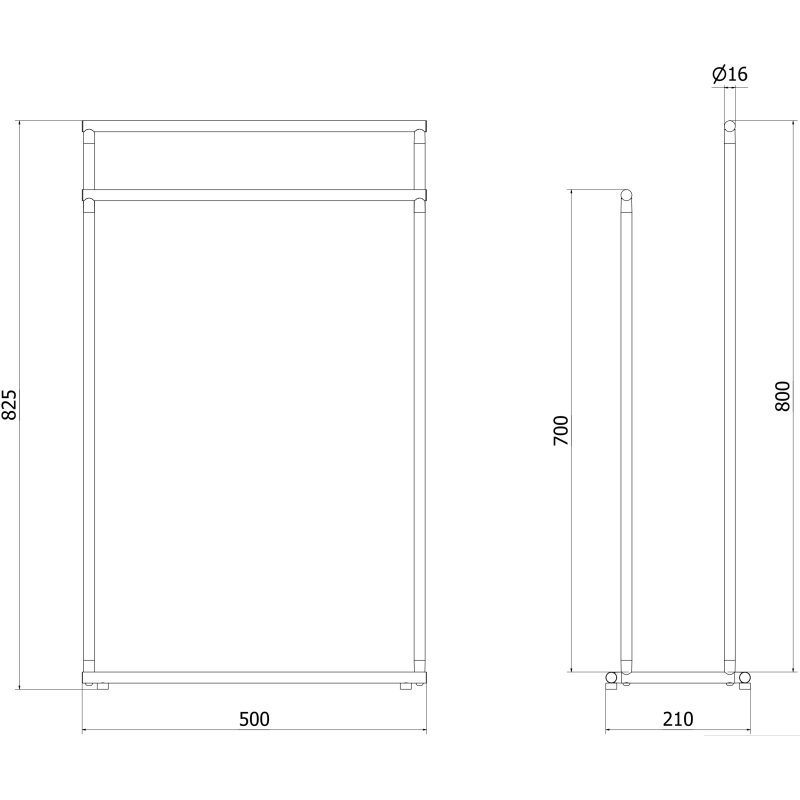 Specyfikacja produktu: Materiał: Stal nierdzewna Kolor: Czarny Szerokość: 50 x 21 cm Wysokość: 82,5 cm 2 drążki na ręczniki o różnej wysokości