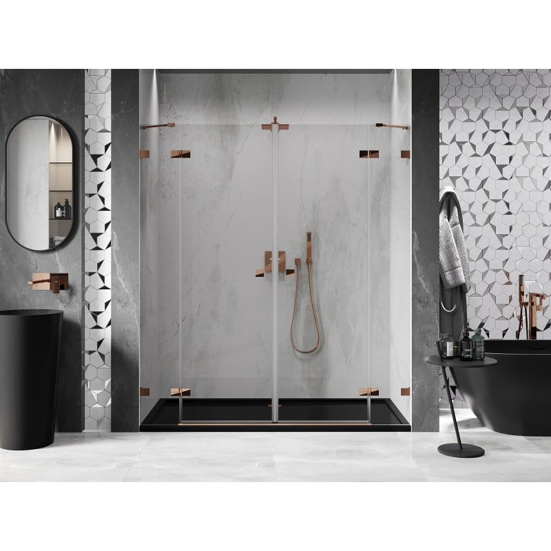 Mexen Lunar Duo drzwi prysznicowe uchylne 170 cm, transparent, różowe złoto - 834D-170-000-60-00