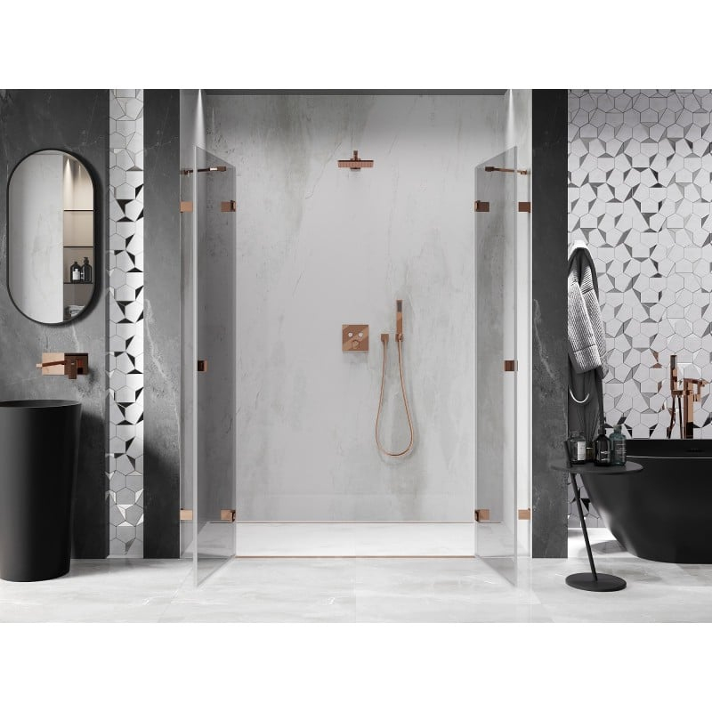 Mexen Lunar Duo drzwi prysznicowe uchylne 190 cm, transparent, różowe złoto - 834D-190-000-60-00