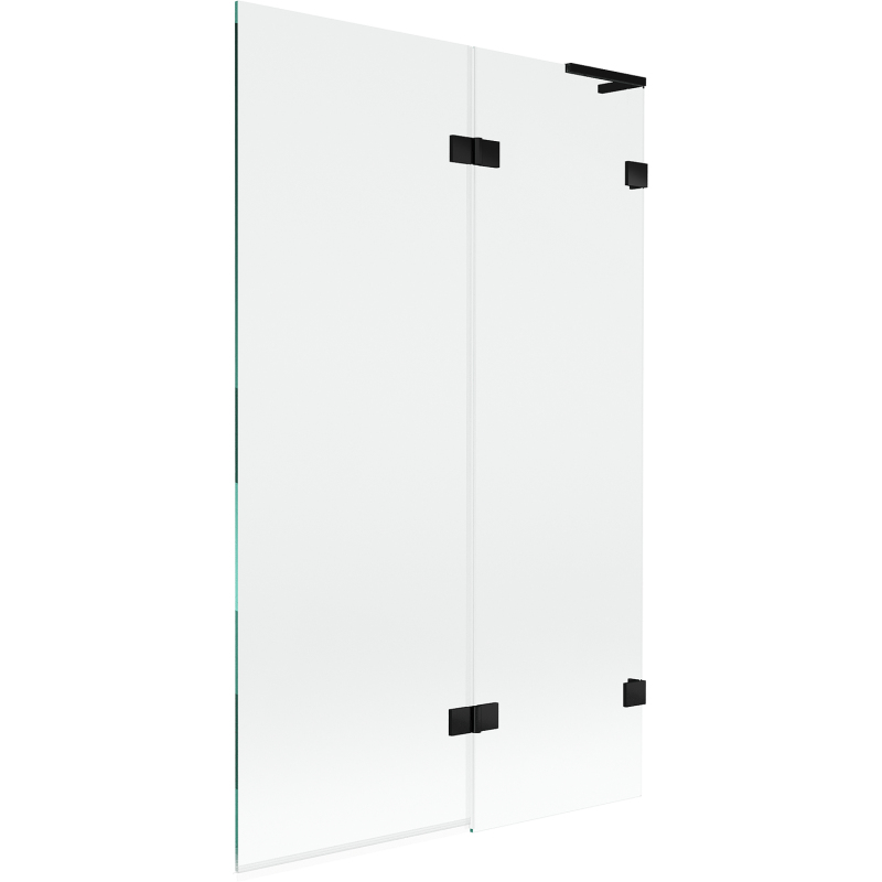 Specifikace produktu: Šířka: 110 cm Výška: 150 cm Typ: 2křídlé Strana montáže: Pravá Typ: Pohyblivé/Výklopné Typ skla: Tvrzené Barva skla: Průhledná Tloušťka skla: 8 mm Povrchová úprava: Černá Úhlový stabilizátor L: Nerezová ocel Povlak pro snadné čištění Nastavitelná šířka Mosazné svorky a panty v jedné rovině se sklem Elastomerová těsnění pro odvod vody Dva montážní systémy: - S profilem, který umožňuje vyrovnání nerovností stěny - Bez profilu pro dokonale rovné stěny