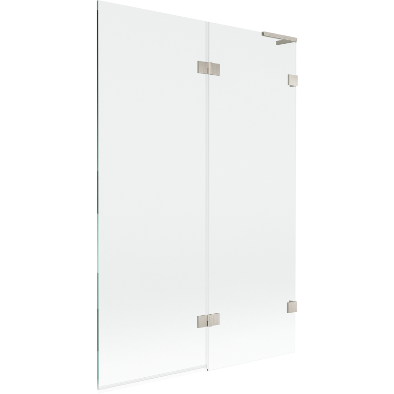 Specifikace produktu: Šířka: 120 cm Výška: 150 cm Typ: 2křídlé Strana montáže: Pravá Typ: Pohyblivé/Výklopné Typ skla: Tvrzené Barva skla: Průhledná Tloušťka skla: 8 mm Povrchová úprava: Kartáčovaný nikl Úhlový stabilizátor L: Nerezová ocel Povlak pro snadné čištění Nastavitelná šířka Mosazné svorky a panty v jedné rovině se sklem Elastomerová těsnění pro odvod vody Dva montážní systémy: - S profilem, který umožňuje vyrovnání nerovností stěny - Bez profilu pro dokonale rovné stěny