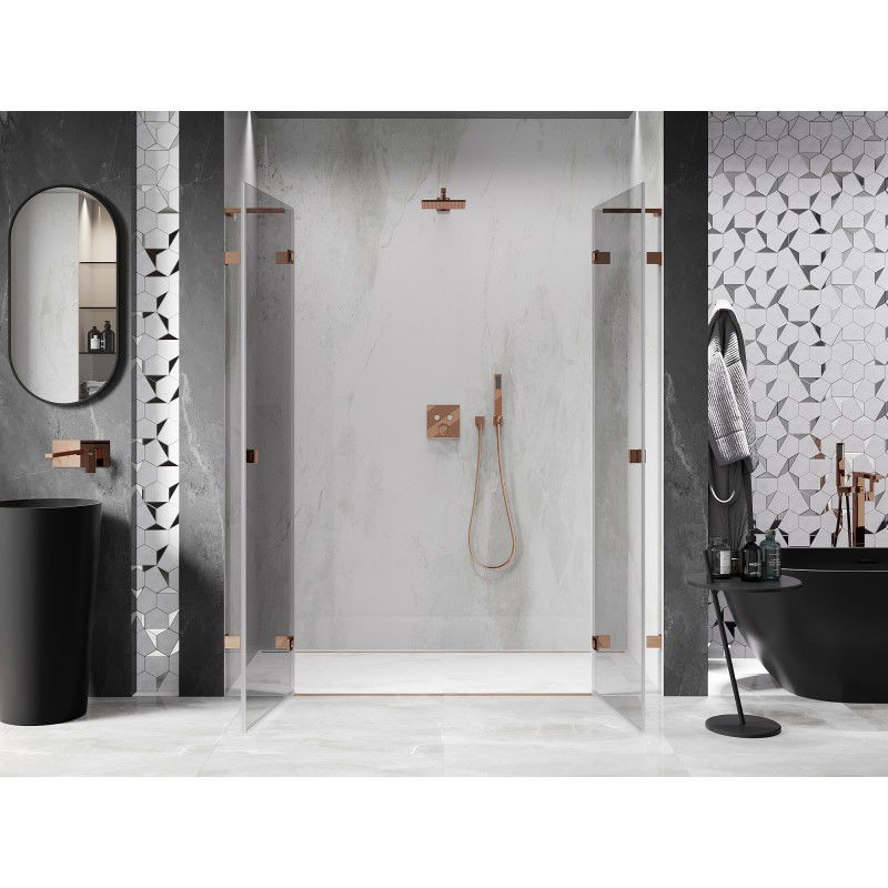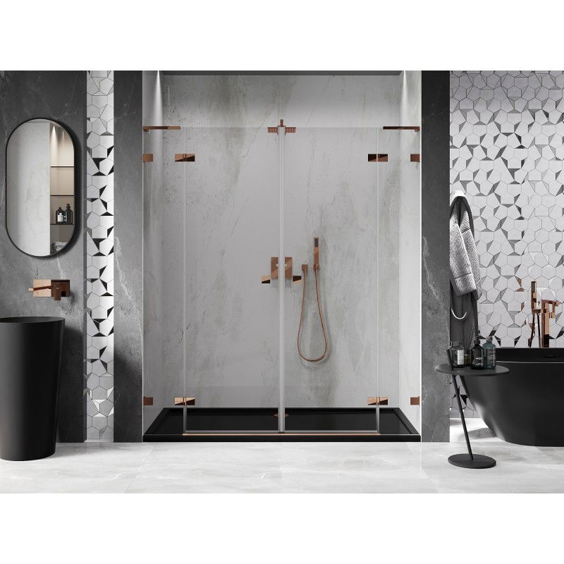 Mexen Lunar L Duo drzwi prysznicowe uchylne 170 cm, transparent, różowe złoto - 834DL-170-000-60-00