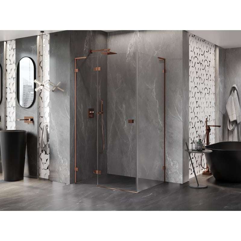 Mexen Lunar L kabina prysznicowa uchylna lewa 80 x 90 cm, transparent, różowe złoto - 834L-080-090-60-00-L