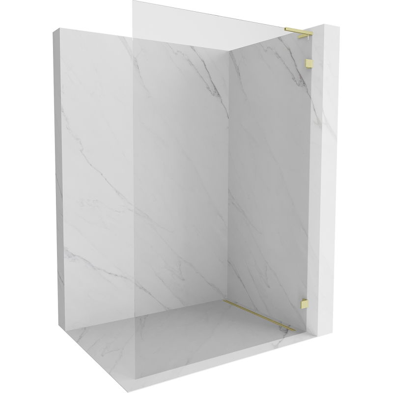 Specifikace produktu: Šířka: 100 cm Výška: 200 cm Strana montáže: Pravá Barva skla: Průhledná Povrchová úprava: Kartáčované zlato Typ skla: Tvrzené Tloušťka skla: 8 mm Profil: Hliník Stabilizátor ve tvaru L: Nerezová ocel Povrchová úprava pro snadné čištění Dva montážní systémy: - S profilem, který umožňuje vyrovnání nerovností stěny - Bez profilu pro dokonale rovné stěny Možnost montáže na sprchovou vaničku nebo obklady Mosazné svorky zarovnané se skleněnou tabulí