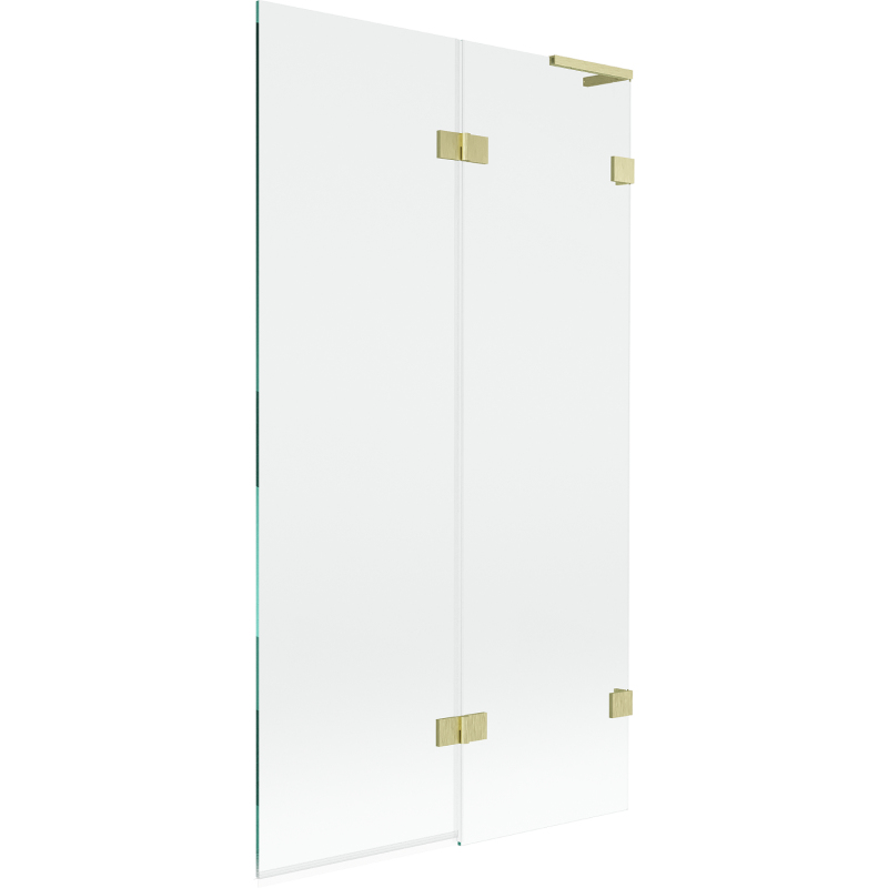 Specifikace produktu: Šířka: 100 cm Výška: 150 cm Typ: 2-křídlé Strana montáže: Pravá Typ: Pohyblivé/Výklopné Typ skla: Tvrzené Barva skla: Průhledná Tloušťka skla: 8 mm Povrchová úprava: Kartáčované zlato Stabilizátor úhlu L: Nerezová ocel Povlak pro snadné čištění Nastavitelná šířka Mosazné svorky a panty v jedné rovině se sklem Elastomerová těsnění pro odvod vody Dva montážní systémy: - S profilem, který umožňuje vyrovnání nerovností stěny - Bez profilu pro dokonale rovné stěny