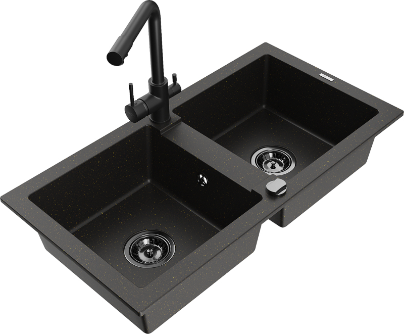 Mexen Mario Dvojdřez, granit s baterií Duero, černá/zlatá 6504-75-671600-70-B