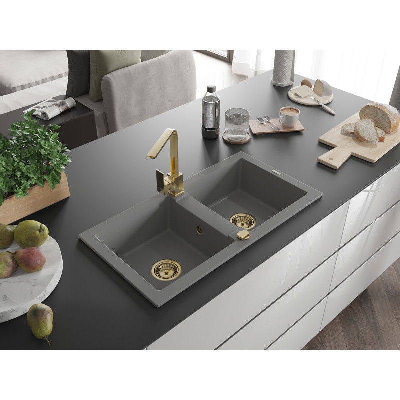 Mexen Mario 2miskový granitový dřez s kuchyňskou baterií Rita, šedá - 6504-71-670300-50