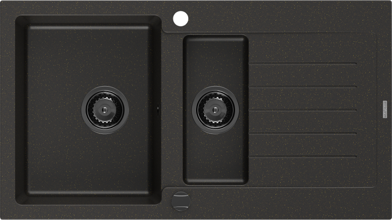 Mexen Matias granitový dřez 1,5 miska s odkapávačem 900 x 505 mm, černá/zlatá metalíza, černý sifon - 6502901505-75-B