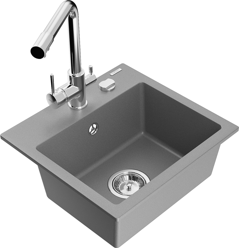 Mexen Milo 1-miskový granitový dřez s kuchyňskou baterií Duero, šedá - 6505-71-671600-00