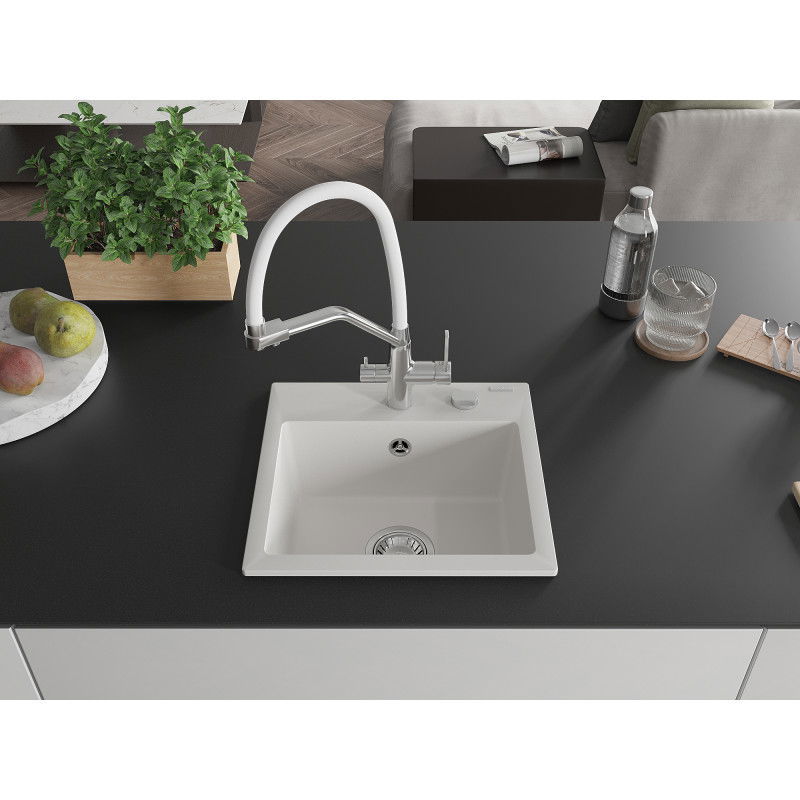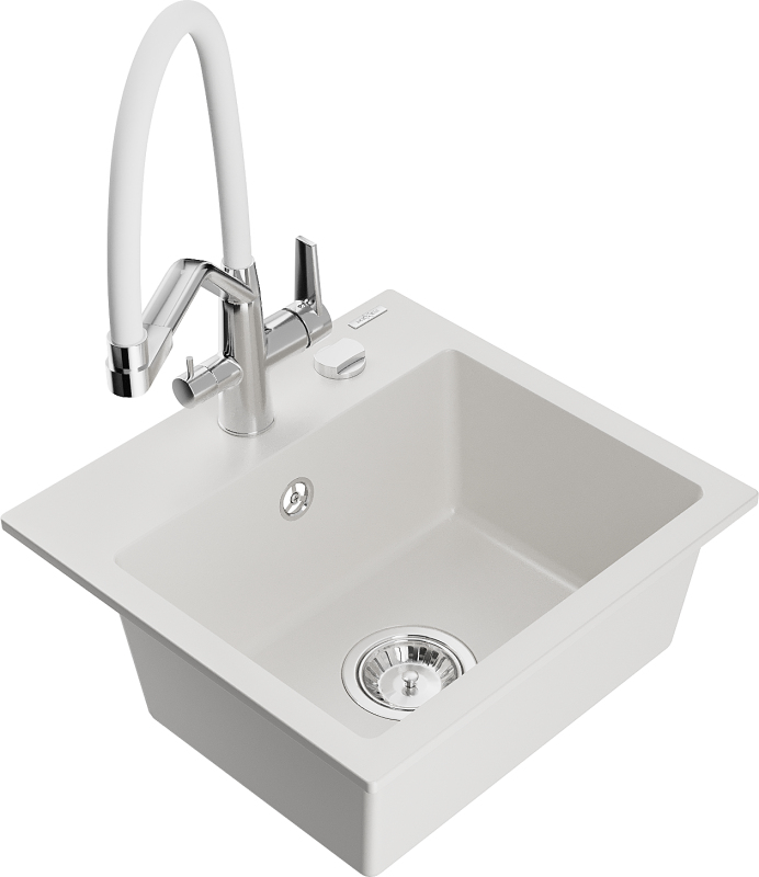 Mexen Milo 1-miskový granitový dřez s kuchyňskou baterií Duo, bílá - 6505-20-671701-02