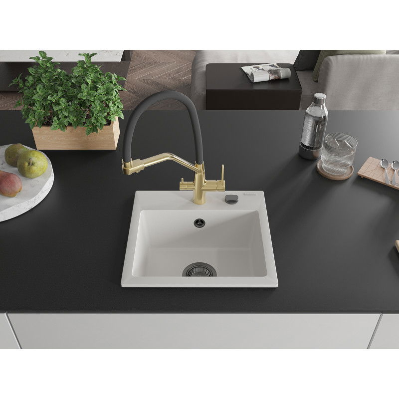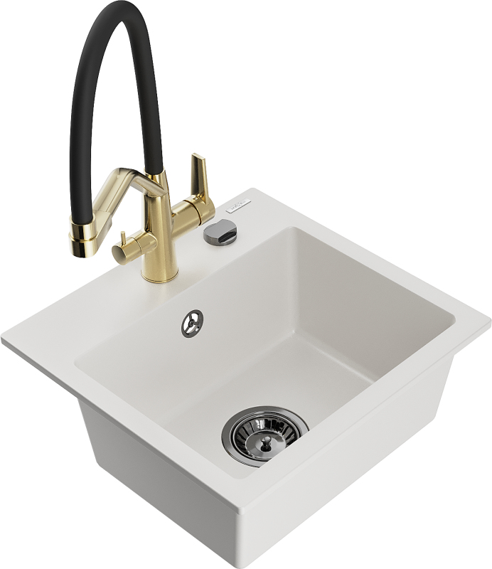 Mexen Milo 1miskový granitový dřez s kuchyňskou baterií Duo, bílá - 6505-20-671701-57-B