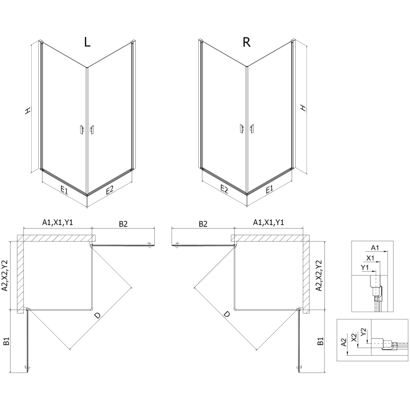 Specifikace produktu: Rozměr: 100x80 cm Výška: 200 cm Strana montáže: Univerzální Vchod: Dveře s výklopnými křídly Barva skla: Průhledná Povrchová úprava: Chrom Profil: Hliník Typ skla: Tvrzené Tloušťka skla: 6 mm Povrchová úprava pro snadné čištění Nastavitelná šířka Možnost montáže na sprchovou vaničku nebo dlaždice Mechanismus zvedání a spouštění dveří Magnetický proužek a elastomerové těsnění pro odtok vody Hliníkový práh těsnění dveří