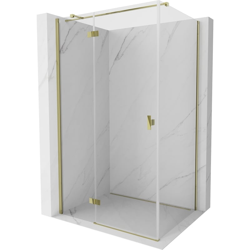 Specifikace produktu: Rozměr: 105x70 cm (levé dveře 105 cm, stěna 70 cm) Výška: 200 cm Strana montáže: Levá Vchod: Dveře s výklopnými křídly Barva skla: Průhledná Povrchová úprava: Zlatá Profil: Hliník Konzola: Nerezová ocel Max. délka konzoly: 150 cm Konzolu lze řezat Typ skla: Tvrzené Tloušťka skla: 6 mm Povrchová úprava pro snadné čištění Nastavitelná šířka Možnost montáže na sprchovou vaničku nebo dlaždice Mechanismus pro zvedání a spouštění dveří Mosazné panty v jedné rovině se sklem Magnetický proužek a elastomerové těsnění pro odvod vody Hliníkový práh těsnění dveří