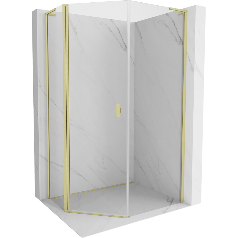 Mexen Mist L pětiúhelníkový asymetrický výklopný sprchový kout 80x100 cm, průhledný, kartáčované zlato - 8A8L-080-100-55-00