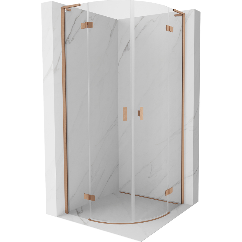 Mexen Mist L půlkruhový výklopný sprchový kout 100 x 100 cm, průhledný, kartáčovaná měď - 8A33L-100-100-65-00
