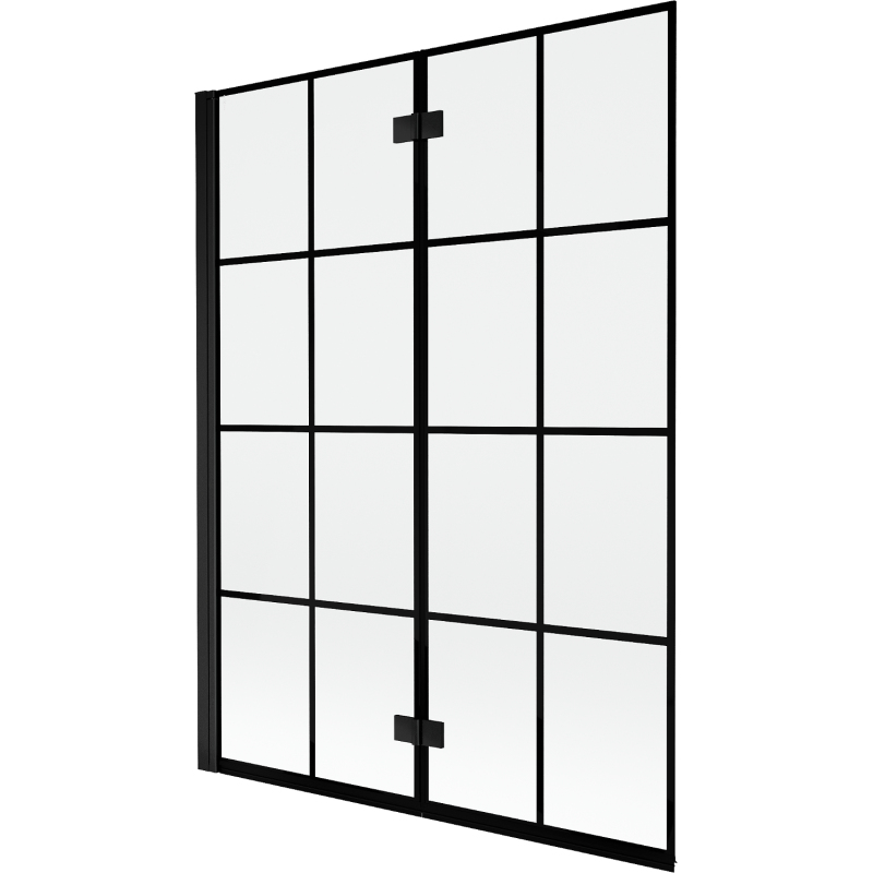 Specifikace produktu: Šířka: 130 cm Výška: 150 cm Typ: 2křídlé Strana montáže: Levá Typ: Posuvné/Skládací Typ skla: Tvrzené Barva skla: Černá mřížka Tloušťka skla: 6 mm Povrchová úprava: Černá Snadno čistitelný povlak Nastavitelná šířka Mosazné panty v jedné rovině se sklem Elastomerová těsnění pro odvod vody