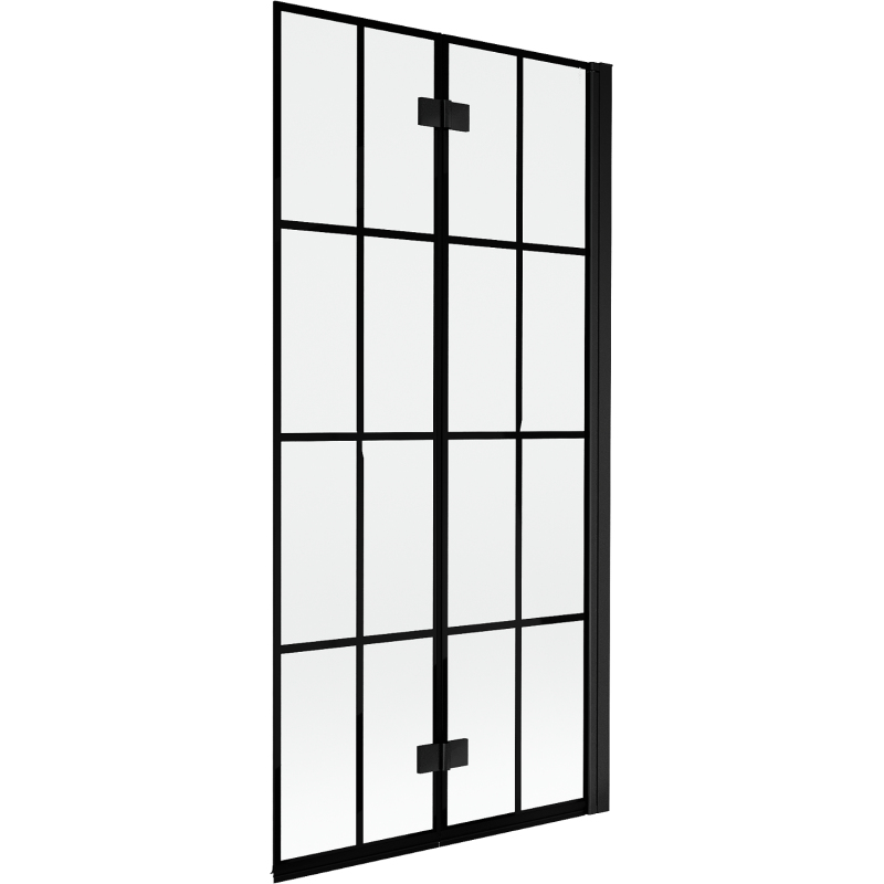 Specifikace produktu: Šířka: 90 cm Výška: 150 cm Typ: 2křídlé Strana montáže: Pravá Typ: Posuvné/Skládací Typ skla: Tvrzené Barva skla: Černá mřížka Tloušťka skla: 6 mm Povrchová úprava: Černá Snadno čistitelný povlak Nastavitelná šířka Mosazné panty v jedné rovině se sklem Elastomerová těsnění pro odvod vody