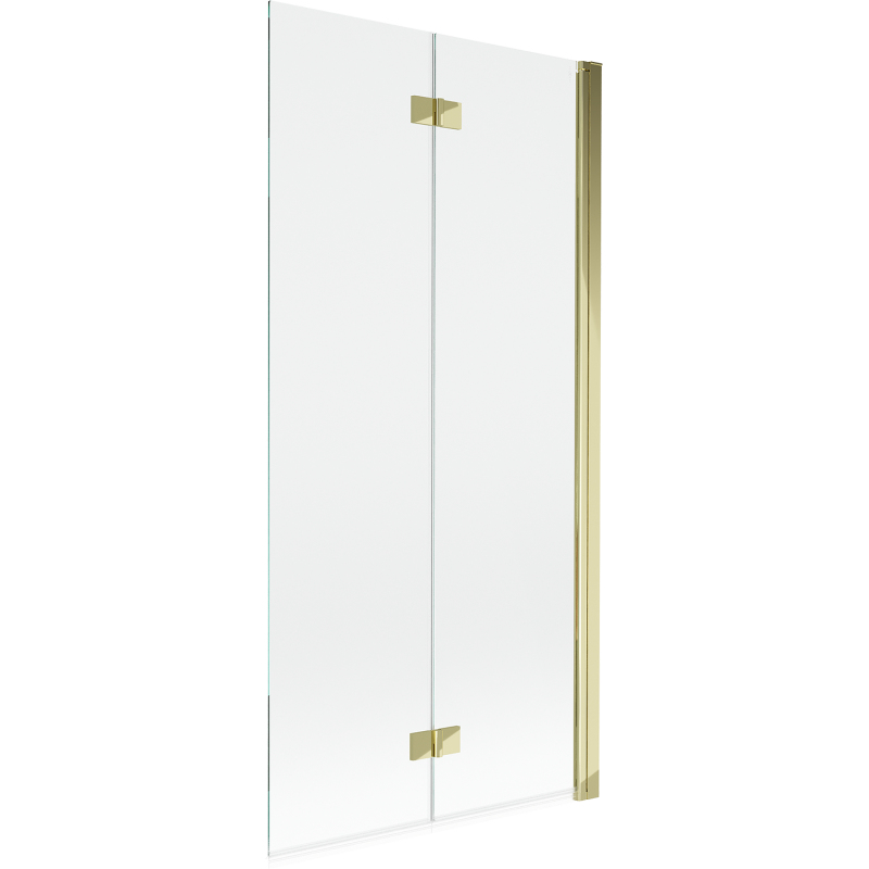 Specifikace produktu: Šířka: 90 cm Výška: 150 cm Typ: 2křídlé Strana montáže: Pravá Typ: Pohyblivé/Skládací Typ skla: Tvrzené Barva skla: Průhledná Tloušťka skla: 6 mm Povrchová úprava: Zlatý povlak pro snadné čištění Nastavitelná šířka Mosazné panty v jedné rovině se sklem Elastomerová těsnění pro odvod vody