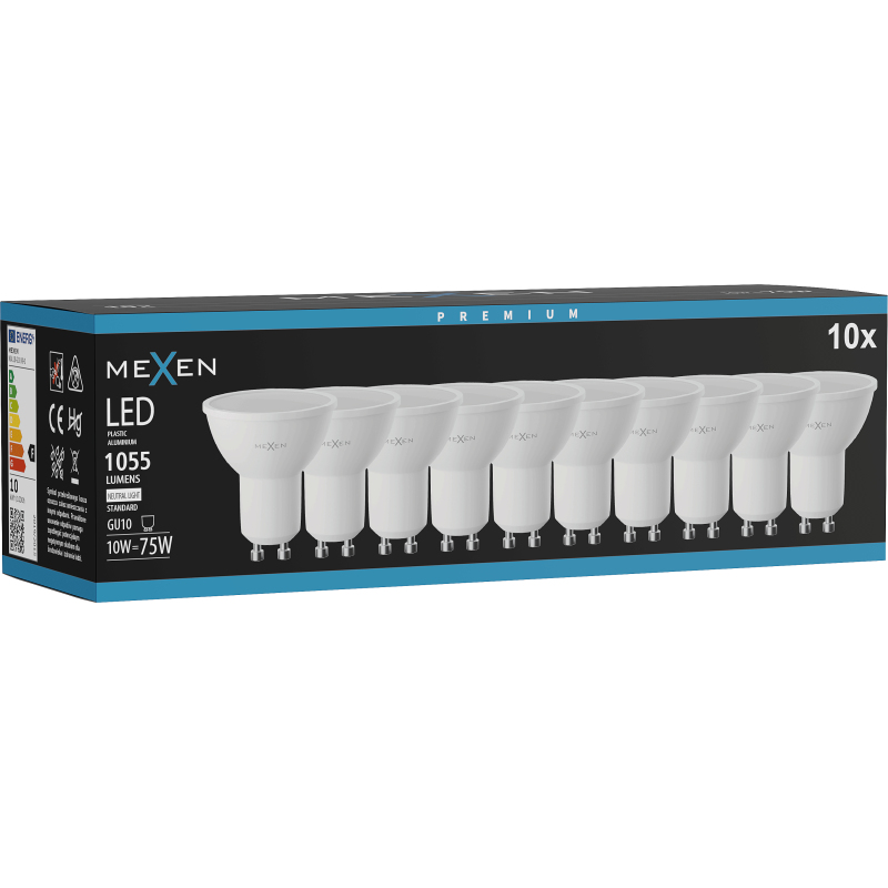 Mexen Nova 10x żarówka LED GU10, 10W, Neutralna - 4000K, 1055 lm - L108-GU10-1040-01x10