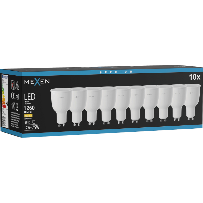 Mexen Nova 10x żarówka LED GU10, 12W, Ciepła - 3000K, 1260 lm - L108-GU10-1230-01x10