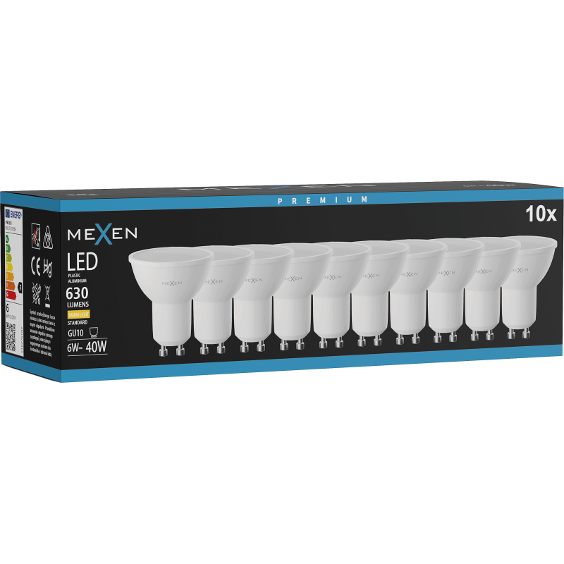 Mexen Nova 10x żarówka LED GU10, 6W, Ciepła - 3000K, 630 lm - L107-GU10-0630-01x10