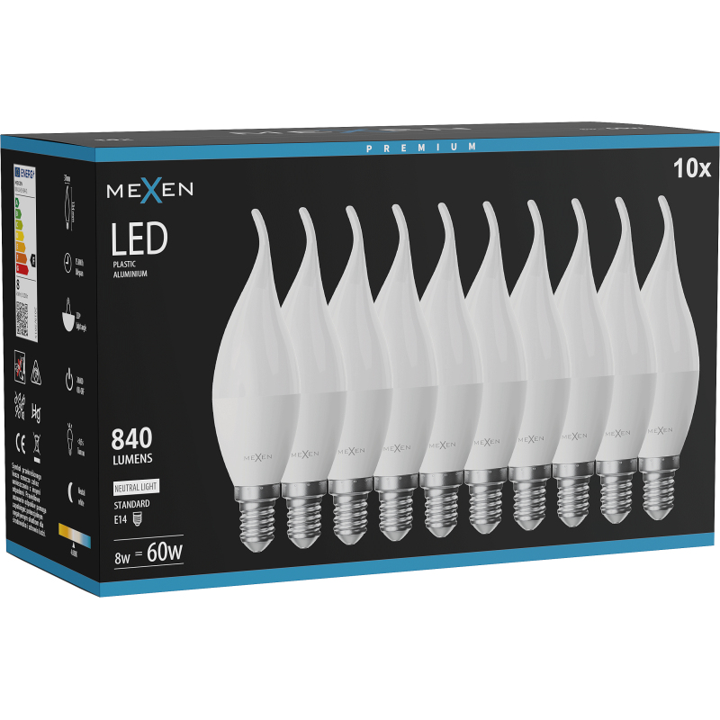 Mexen Nova 10x LED plamenná žárovka E14, C37, 8W, neutrální - 4000K, 840 lm - L106-E14-0840-01x10