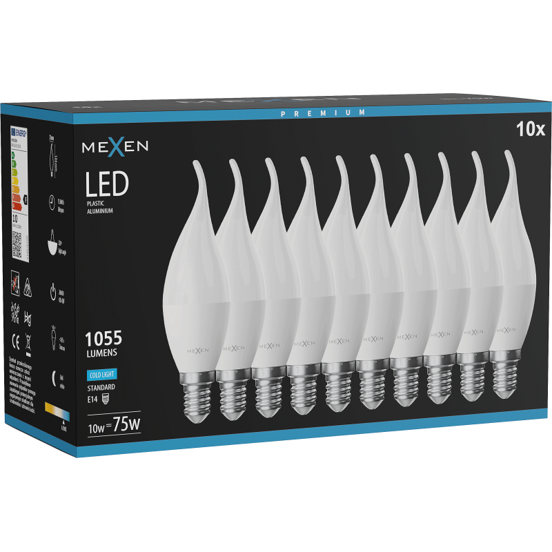 Mexen Nova 10x LED žárovka E14, C37, 10W, studená - 6500K, 1055 lm - L106-E14-1065-01x10