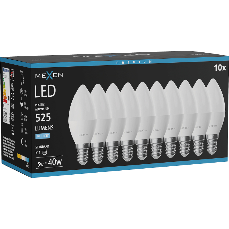 Mexen Nova 10x LED žárovka E14, C37, 5W, studená - 6500K, 525 lm - L102-E14-0565-01x10