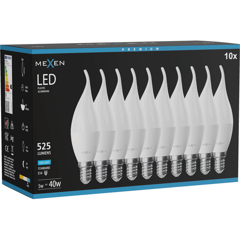 Mexen Nova 10x LED žárovka E14, C37, 5W, studená - 6500K, 525 lm - L106-E14-0565-01x10
