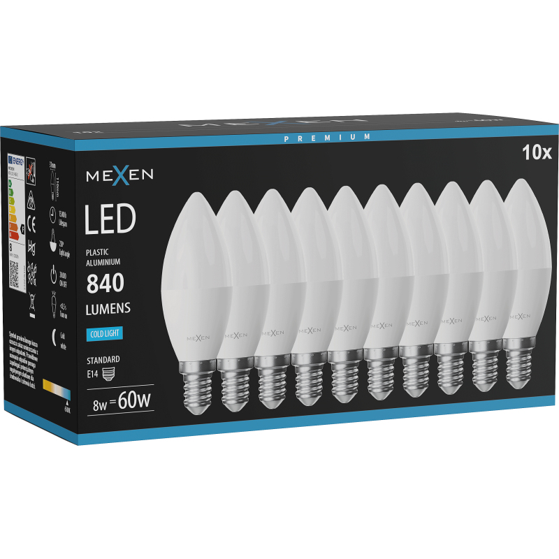 Mexen Nova 10x LED žárovka E14, C37, 8W, studená - 6500K, 840 lm - L102-E14-0865-01x10
