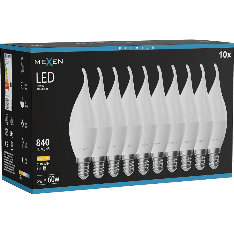 Mexen Nova 10x LED žárovka E14, C37, 8W, teplá - 3000K, 840 lm - L106-E14-0830-01x10