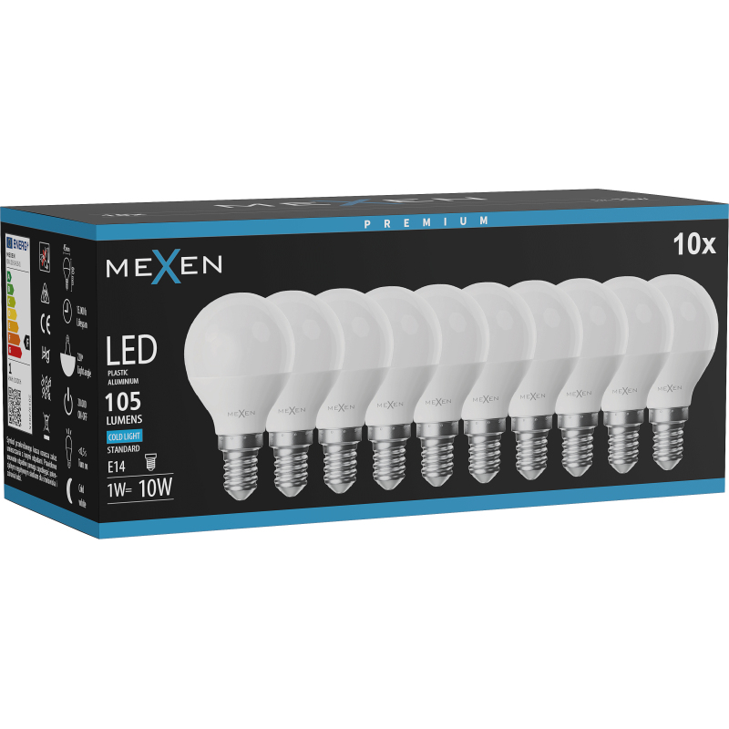 Mexen Nova 10x LED žárovka E14, G45, 1W, studená - 6500K, 105 lm - L101-E14-0165-01x10