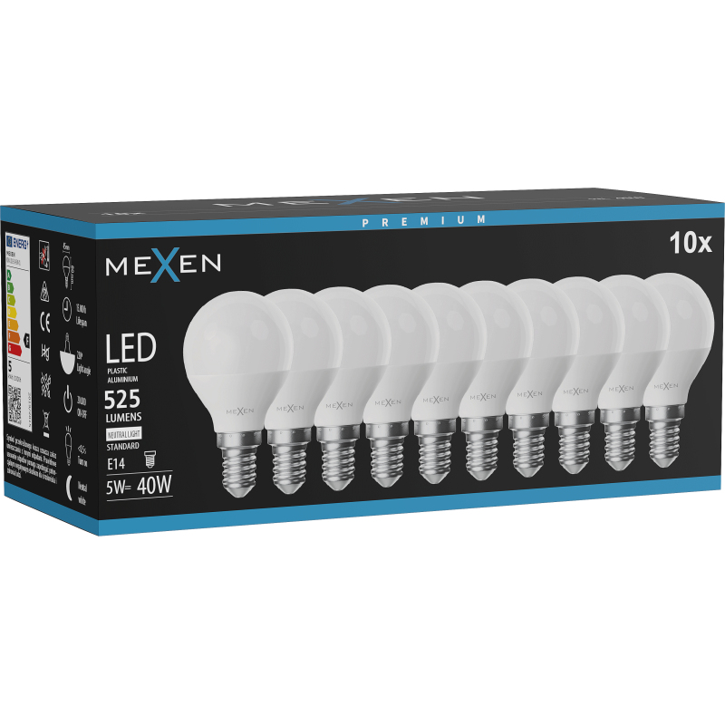 Mexen Nova 10x LED žárovka E14, G45, 5W, neutrální - 4000K, 525 lm - L101-E14-0540-01x10