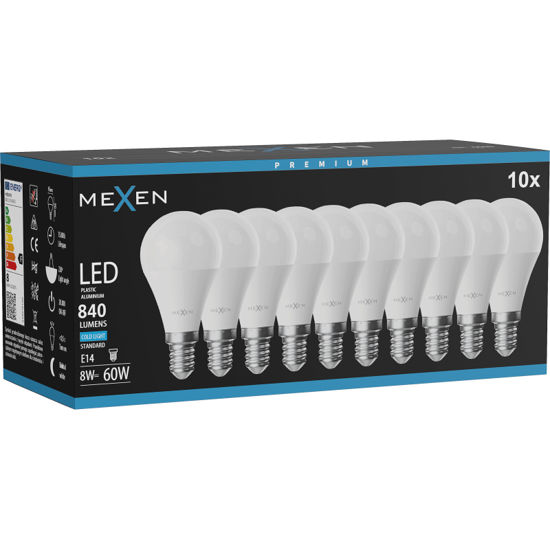 Mexen Nova 10x LED žárovka E14, G45, 8W, studená - 6500K, 840 lm - L101-E14-0865-01x10