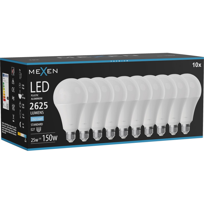 Mexen Nova 10x LED žárovka E27, A95, 25W, studená - 6500K, 2625 lm - L100-E27-2565-01x10