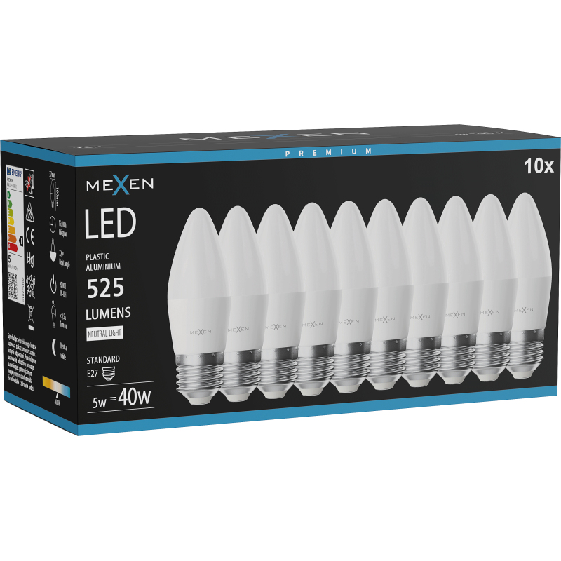 Mexen Nova 10x LED žárovka E27, C37, 5W, neutrální - 4000K, 525 lm - L102-E27-0540-01x10