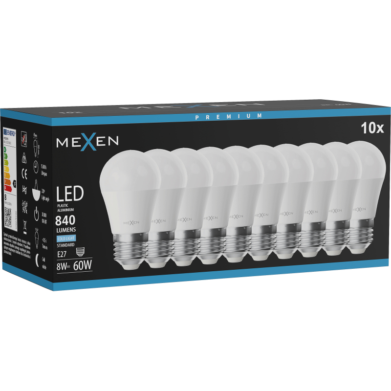 Mexen Nova 10x LED žárovka E27, G45, 8W, studená - 6500K, 840 lm - L101-E27-0865-01x10